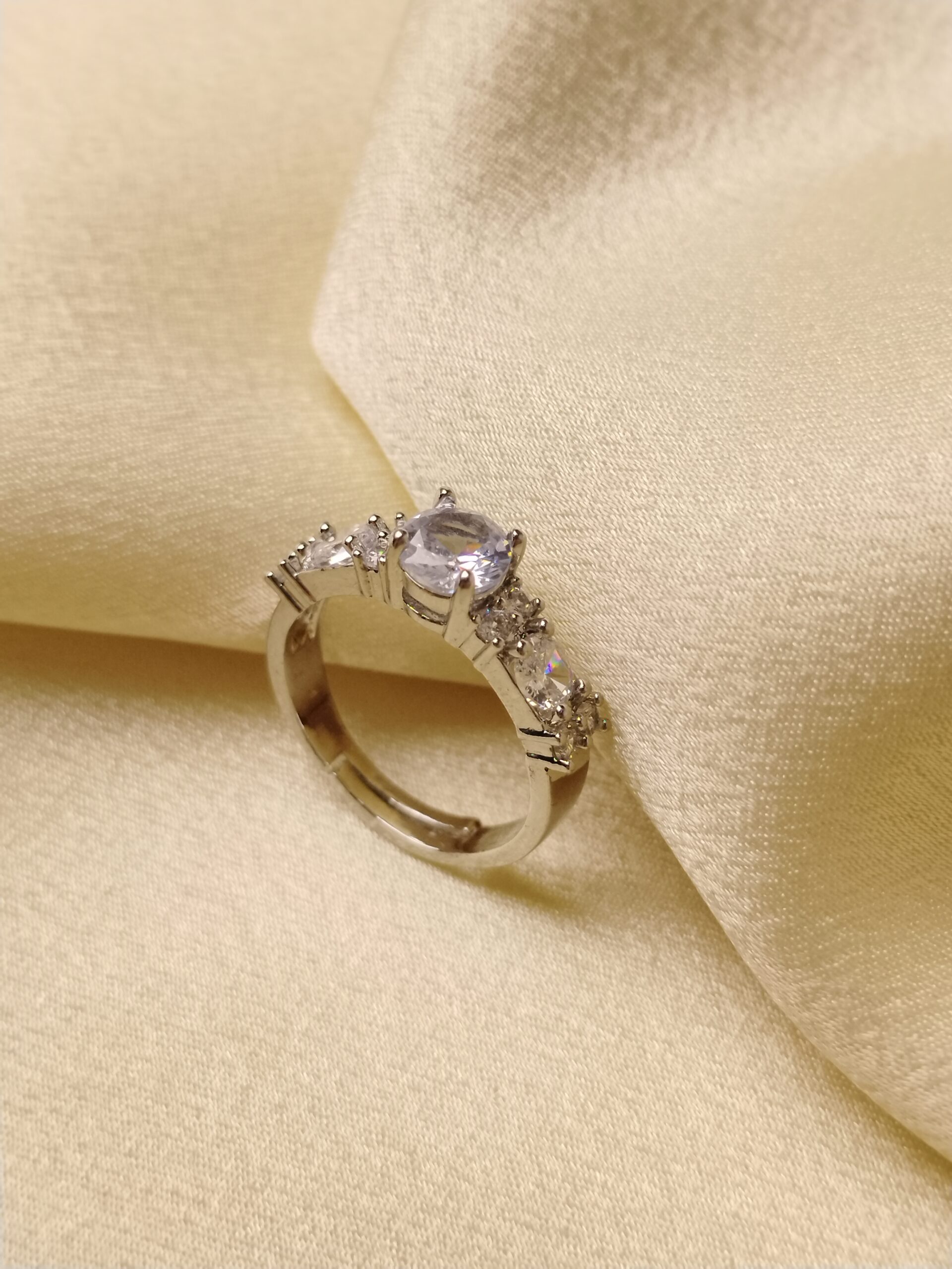 A finely crafted ring designed for understated beauty, made from hypoallergenic stainless steel with a soft metallic finish. Its minimalist design whispers refinement, making it ideal for everyday grace and timeless style.