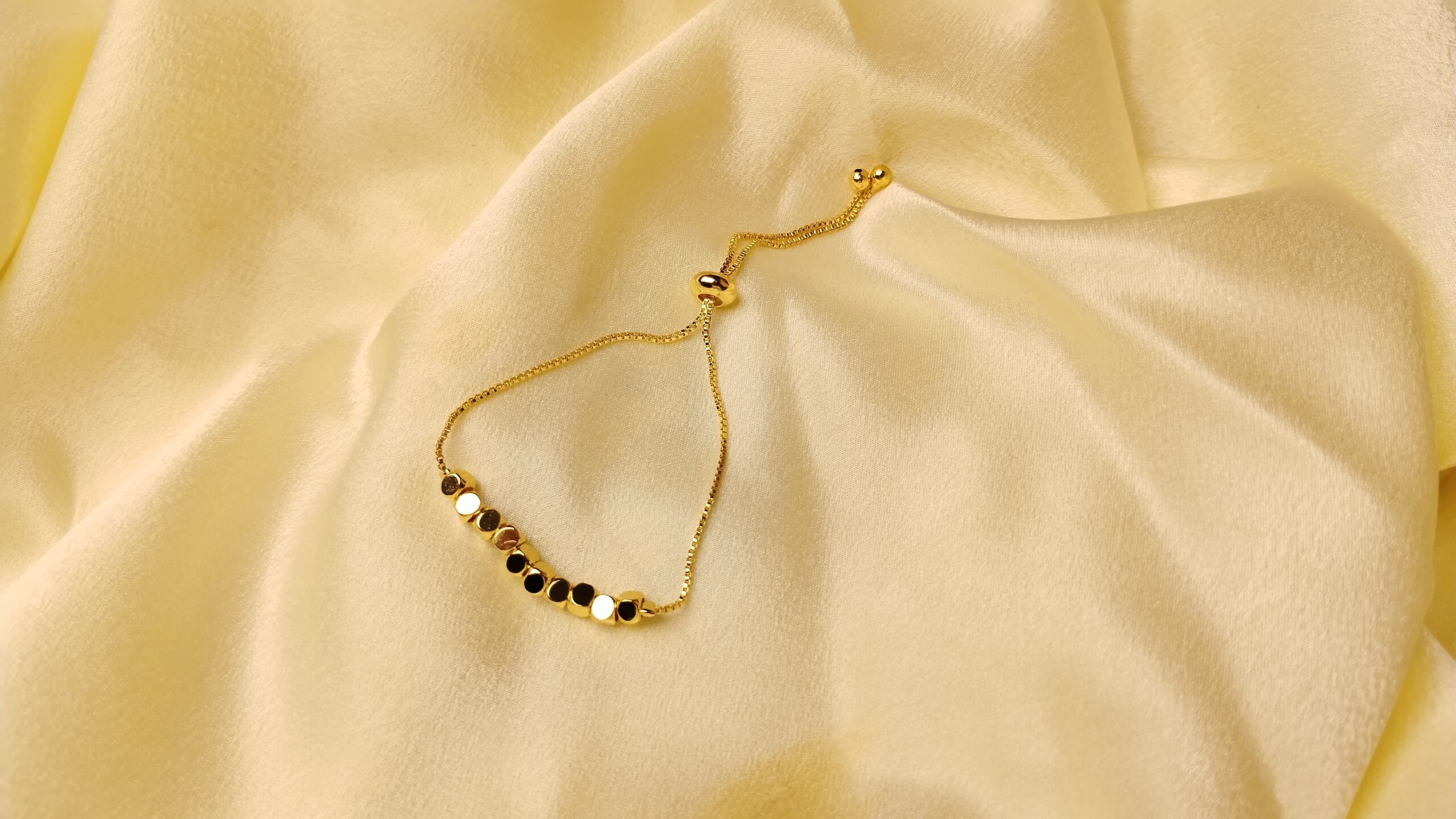 Adjustable golden beaded bracelet crafted from premium stainless steel. Hypoallergenic, tarnish-resistant, and perfect for daily elegance or gift-giving.