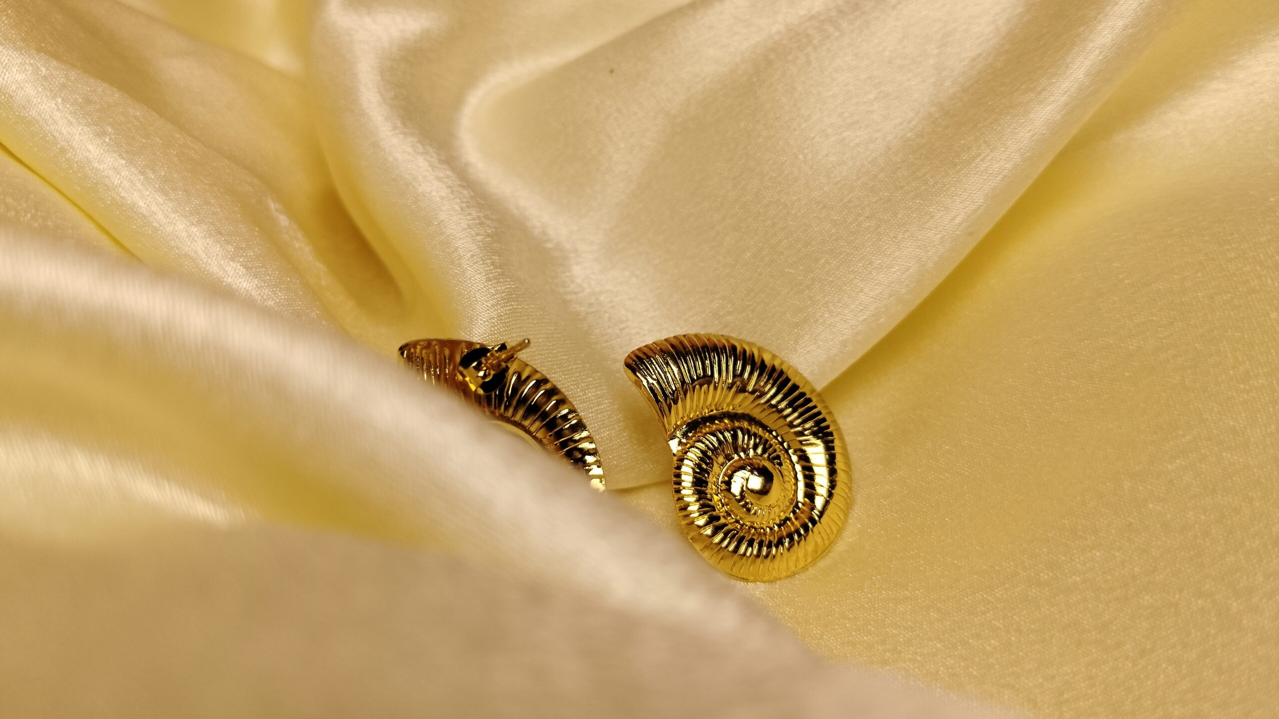 Delicately crafted sea shell earrings made from hypoallergenic stainless steel with a subtle metallic finish. Their lightweight build and timeless design offer a touch of organic elegance to any outfit.