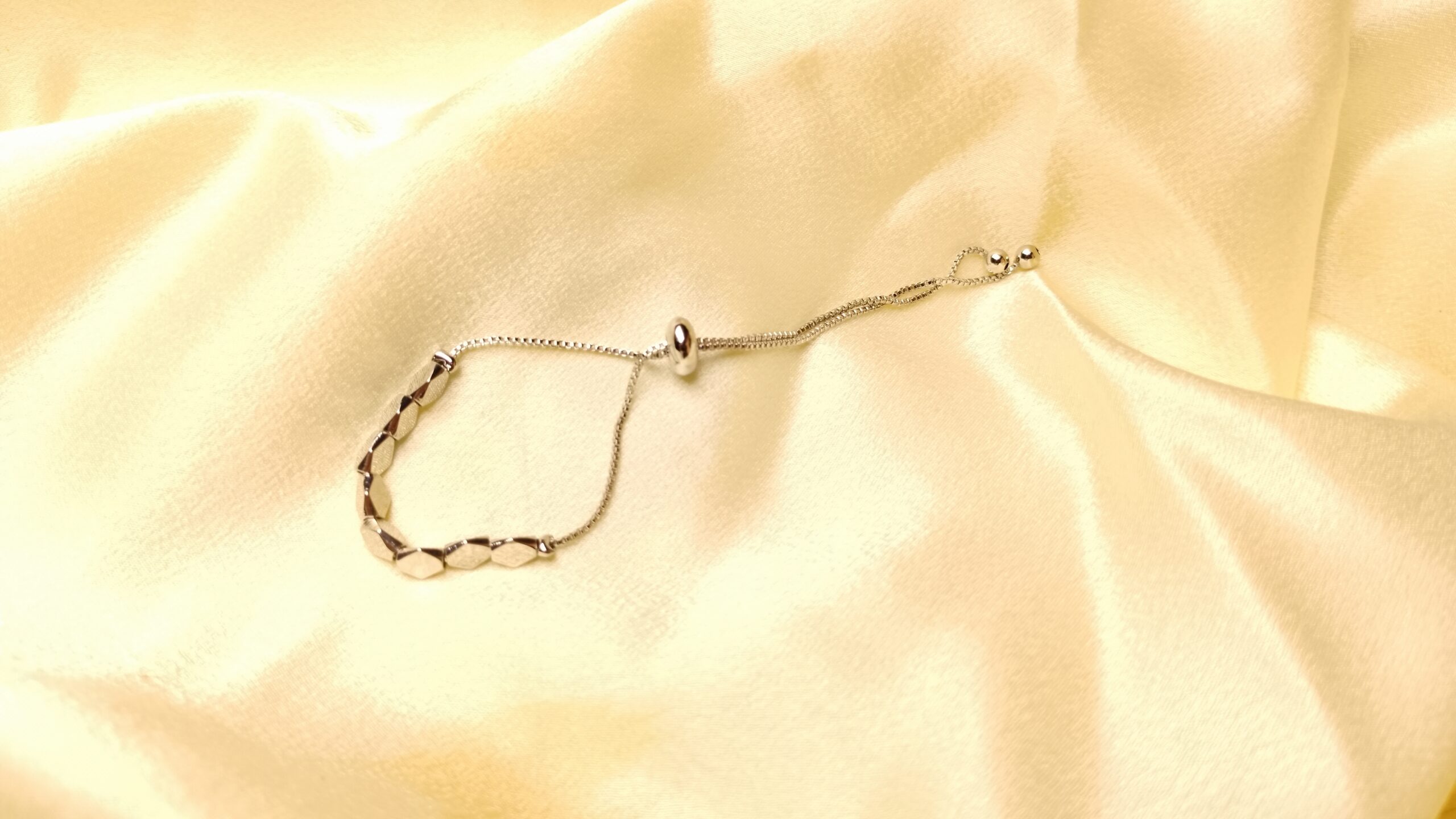 Adjustable silver bracelet. Hypoallergenic stainless steel, versatile design, perfect for daily wear or elegant gifting.